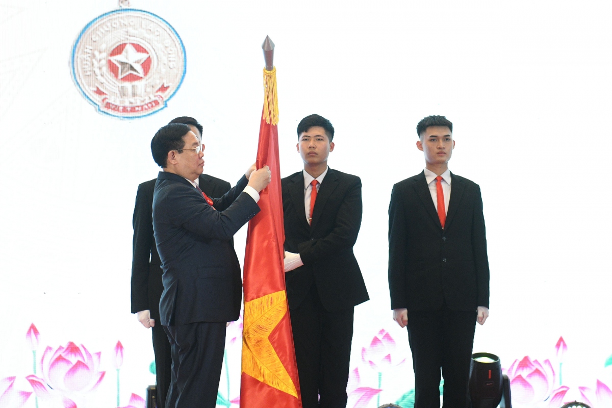 Chủ tịch Quốc hội Vương Đình Huệ gắn Huân chương Lao động hạng Nhì trao tặng cho Ban Công tác đại biểu. Ảnh: VOV |