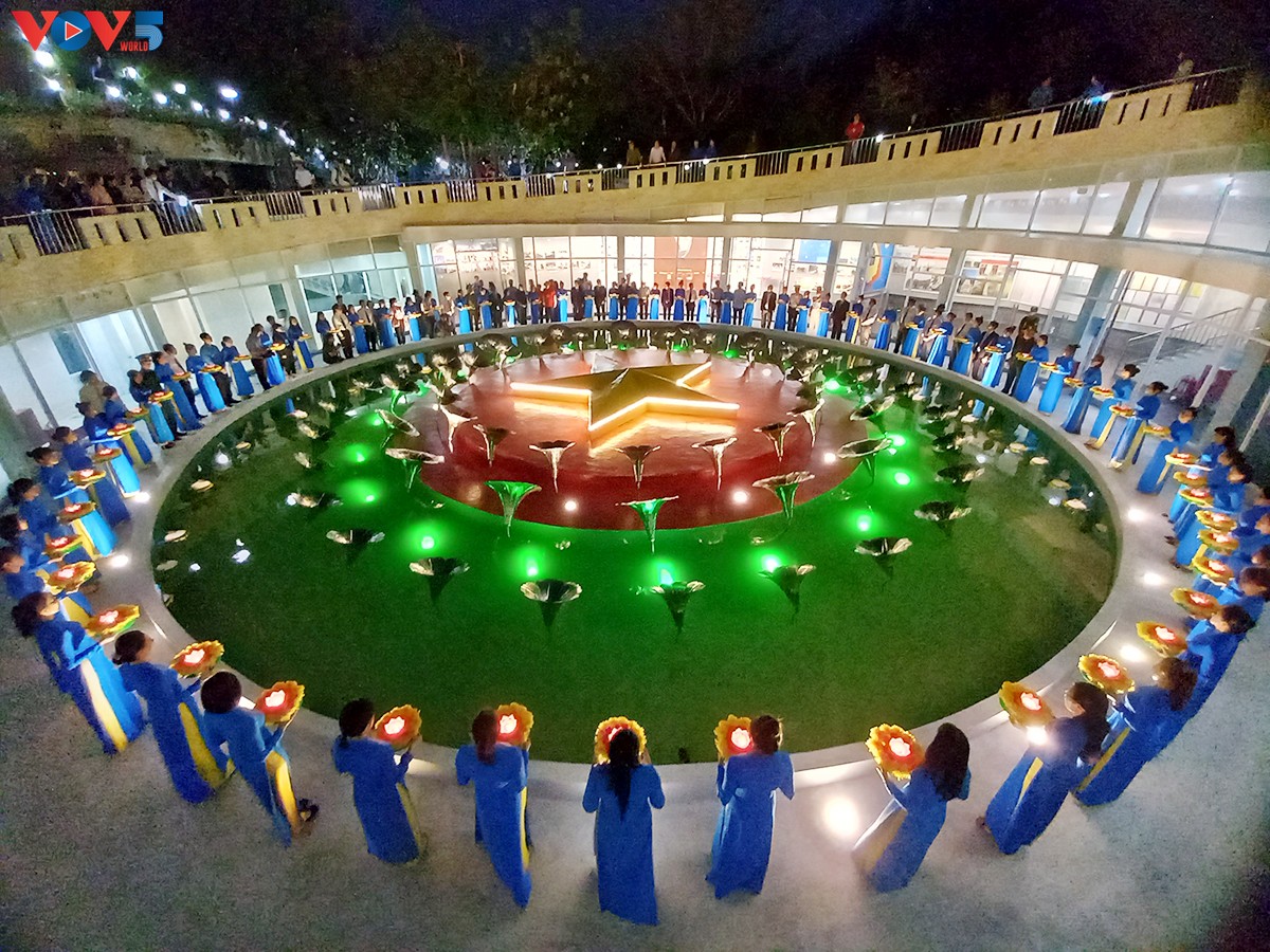 Các đại biểu thả hoa đăng tưởng niệm các liệt sĩ - Ảnh: VOV |
