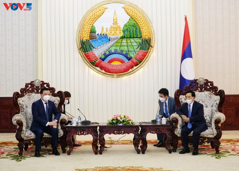 Tại các cuộc gặp, ông Đinh Tiến Dũng báo cáo với các lãnh đạo Lào về kết quả cuộc hội đàm sáng cùng ngày với Bí thư Thành ủy Vientiane Anouphap Tounalom, hai bên đã thống nhất ký kết Biên bản thỏa thuận hợp tác song phương giai đoạn 2022-2025, khẳng định đây là bước đi quan trọng, tạo khuôn khổ cho các hoạt động hợp tác giữa hai thủ đô trong giai đoạn mới. Bí thư Thành ủy Đinh Tiến Dũng nhấn mạnh Thủ đô Hà Nội luôn dành ưu tiên cao trong phát triển quan hệ hữu nghị, hợp tác với các địa phương của Lào, đặc biệt là Thủ đô Vientiane.