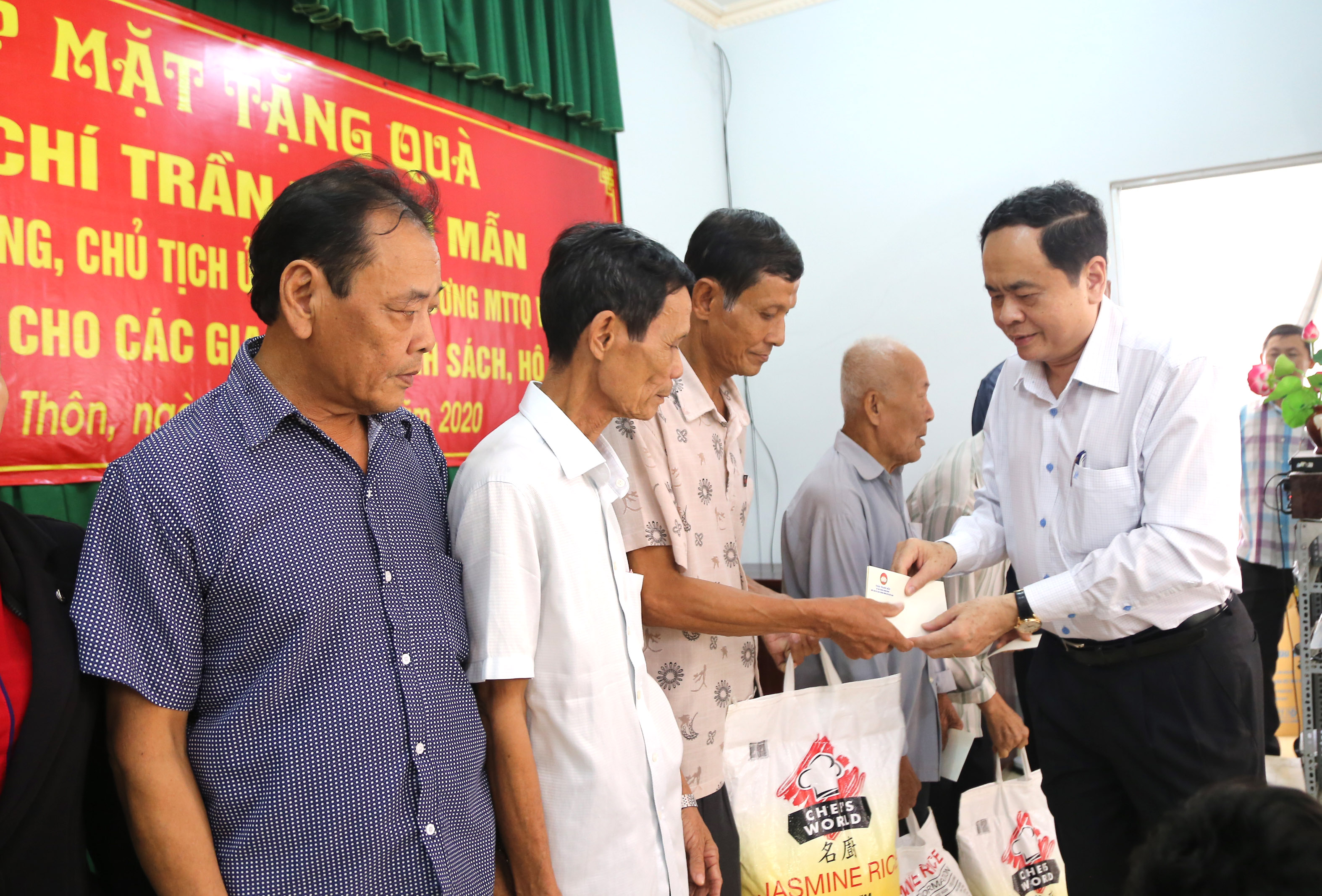 Cùng ngày, tại tỉnh Sóc Trăng, Chủ tịch Ủy ban Trung ương Mặt trận Tổ quốc Việt Nam Trần Thanh Mẫn thăm hỏi, tặng quà gia đình chính sách, hộ nghèo trên địa bàn thị trấn An Lạc Thôn, huyện Kế Sách.