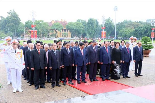 Các vị lãnh đạo Đảng, Nhà nước đã thành kính tưởng nhớ Chủ tịch Hồ Chí Minh, vị lãnh tụ thiên tài, Anh hùng Giải phóng dân tộc, Người đã dẫn dắt Đảng Cộng sản Việt Nam, nhân dân Việt Nam làm nên những thắng lợi vẻ vang, làm rạng rỡ dân tộc Việt Nam, non sông đất nước Việt Nam.