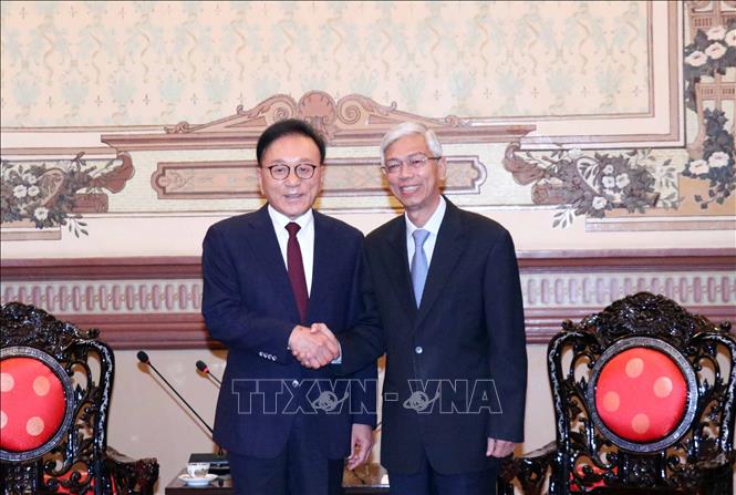 Ông Võ Văn Hoan, Phó Chủ tịch UBND Thành phố Hồ Chí Minh (phải) tiếp ông Park Soo Kwan, Tổng Lãnh sự danh dự Việt Nam tại Busan (Hàn Quốc). Ảnh: TTXVN |