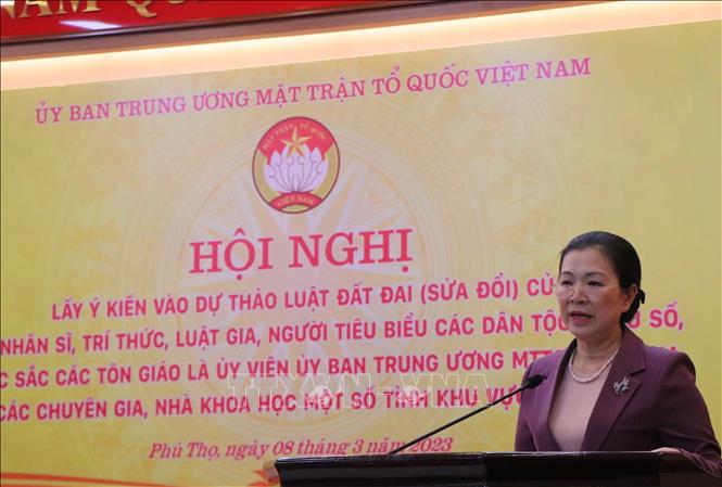 Tại hội nghị, Phó Chủ tịch Ủy ban Trung ương Mặt trận Tổ quốc Việt Nam Trương Thị Ngọc Ánh khẳng định: Việc sửa đổi, bổ sung các quy định của Luật Đất đai để điều chỉnh một số nội dung phát sinh trong thực tiễn là cần thiết nhằm đáp ứng nhu cầu quản lý, sử dụng có hiệu quả nguồn tài nguyên, nguồn lực đất đai, phát triển kinh tế - xã hội, đảm bảo quốc phòng, an ninh, quyền và lợi ích hợp pháp của người dân, doanh nghiệp.