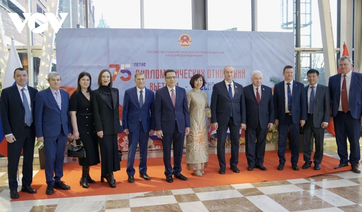 Tối qua (27/02), tại Thủ đô Moscow, Đại sứ quán Việt Nam tại Liên bang Nga tổ chức Lễ Kỷ niệm 75 năm thiết lập quan hệ ngoại giao Việt Nam - Liên bang Nga.