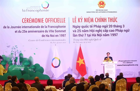 (VOV5) - Lễ kỷ niệm chính thức Ngày Quốc tế Pháp ngữ 2022 và kỷ niệm 25 năm Hội nghị cấp cao Pháp ngữ lần thứ 7 năm 1997 tại Việt Nam đã diễn ra vào tối 25/3 tại Trung tâm Hội nghị Quốc tế Hà Nội, số 11 Lê Hồng Phong.