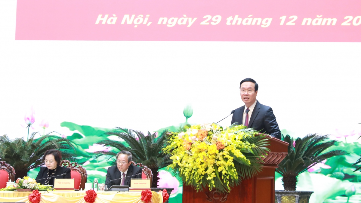 Thường trực Ban Bí thư Võ Văn Thưởng phát biểu tại hội nghị. Ảnh: VOV |