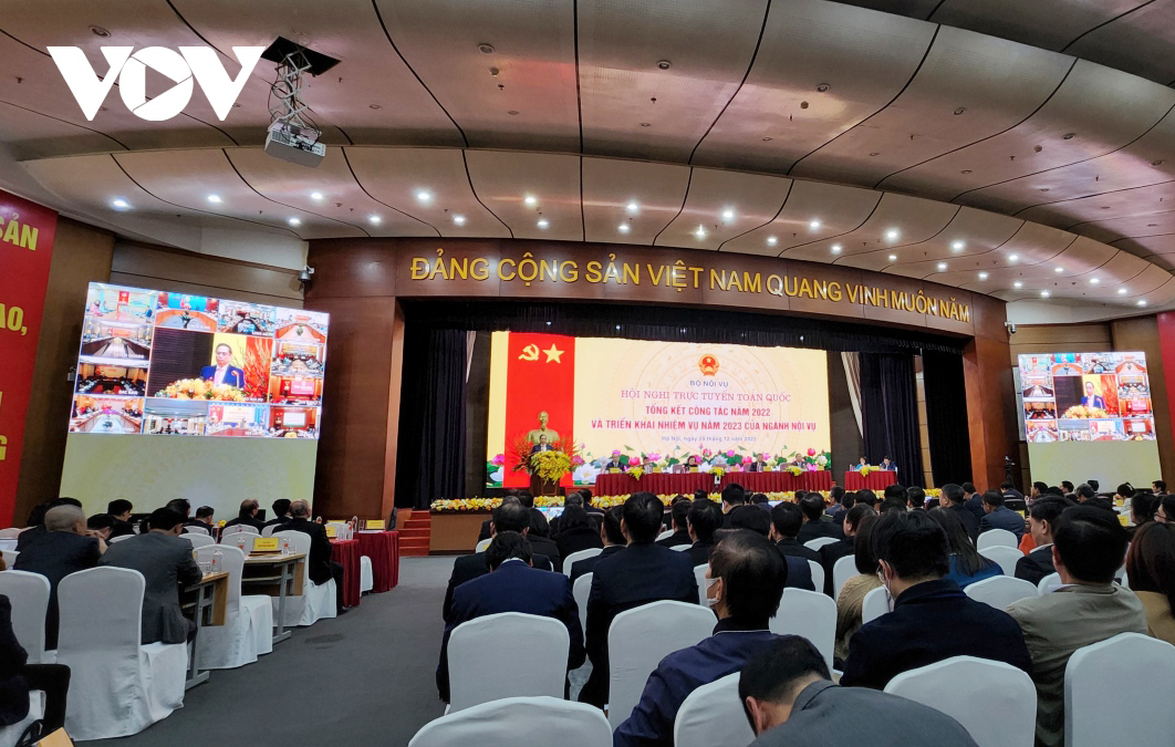 Hội nghị trực tuyến toàn quốc tổng kết công tác năm 2022, triển khai nhiệm vụ công tác năm 2023 của ngành Nội vụ. Ảnh: Vũ Khuyên/VOV |