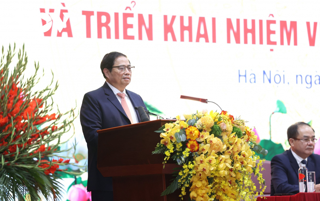 Thủ tướng Phạm Minh Chính phát biểu tại hội nghị. Ảnh: Vũ Khuyên/VOV |