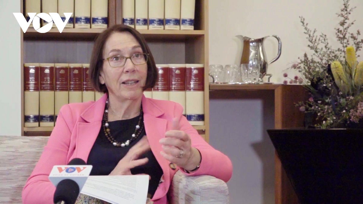 Thượng nghị sỹ Sue Lines, Chủ tịch Thượng viện Australia đánh giá cao chuyến thăm chính thức Australia của Chủ tịch Quốc hội Vương Đình Huệ. Ảnh: VOV |