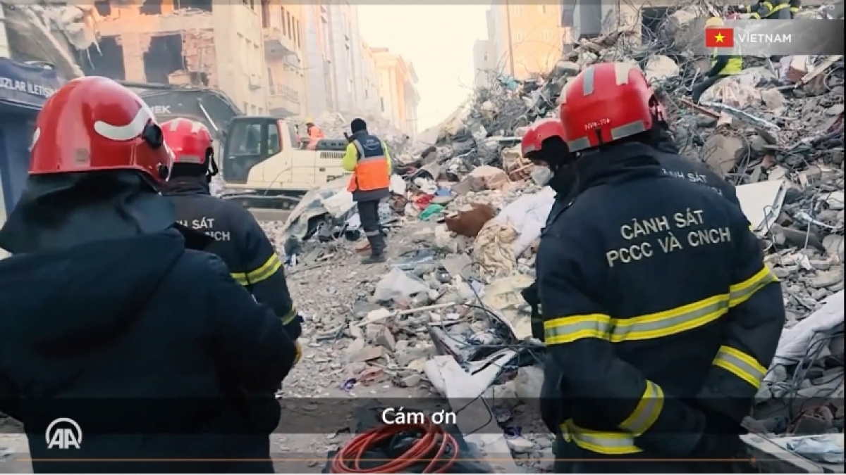 Ngoại trưởng Thổ Nhĩ Kỳ đã gửi lời cảm ơn bằng tiếng Thổ Nhĩ Kỳ, tiếng Anh và nhiều ngôn ngữ của các quốc gia khác nhau, đã gửi đoàn cứu nạn cứu hộ tới tham gia hoạt động nhân đạo tại Thổ Nhĩ Kỳ. Hình ảnh đoàn công tác Việt Nam khi đang tham gia hoạt động cứu hộ tại hiện trường cũng đã xuất hiện trong video clip với hai chữ “cảm ơn” bằng tiếng Việt. Ngoại trưởng Thổ Nhĩ Kỳ kết thúc đoạn video của mình với thông điệp “Chúng tôi đang trải qua những ngày tháng khó khăn, tuy nhiên tình yêu và sự đoàn kết mà Thổ Nhĩ Kỳ nhận được từ khắp nơi trên thế giới đã tiếp thêm sức mạnh cho người dân chúng tôi. Cảm ơn các bạn đã ở bên Thổ Nhĩ Kỳ”.