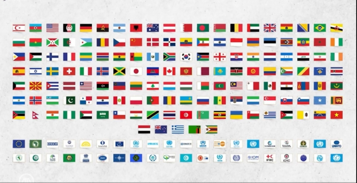 Hình ảnh những lá cờ của các quốc gia và các tổ chức quốc tế xuất hiện trong video cảm ơn của Thổ Nhĩ Kỳ. Ảnh cắt từ video clip. |
