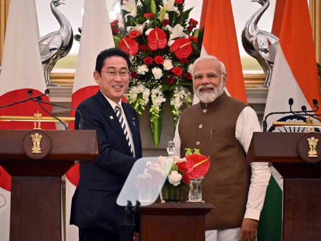 Thủ tướng Nhật Bản Fumio Kishida (trái) và Thủ tướng Ấn Độ Narendra Modi tại cuộc họp báo chung, New Delhi ngày 20/3. Nguồn: ANI |