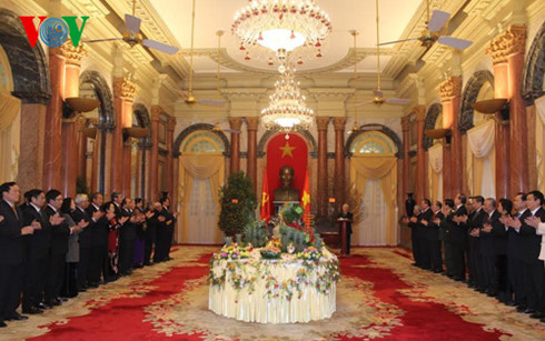 (VOV5)- Mừng Xuân, mừng Đảng tròn 86 tuổi, Tổng Bí thư Nguyễn Phú Trọng chúc Tết các vị lão thành cách mạng, các vị lãnh đạo và nguyên lãnh đạo Đảng, Nhà nước.