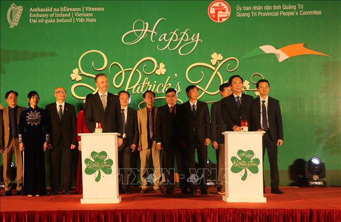 Tối 14/3, UBND tỉnh Quảng Trị phối hợp với Đại sứ quán Ireland tại Việt Nam tổ chức Lễ thắp ánh sáng xanh tại Di tích quốc gia đặc biệt Đôi bờ Hiền Lương - Bến Hải (tỉnh Quảng Trị), nhân kỷ niệm 27 năm thiết lập quan hệ ngoại giao Việt Nam-Ireland (1996-2023) và Ngày Quốc Khánh Ireland (17/3).