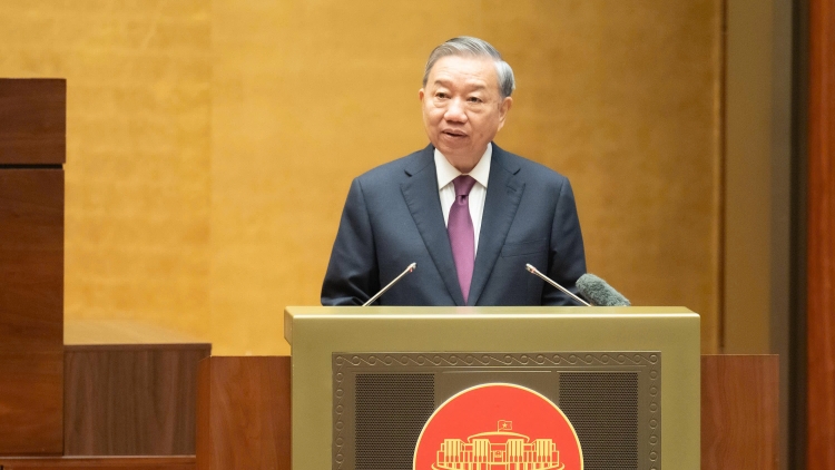 Tổng Bí thư, Chủ tịch nước Tô Lâm phát biểu tại Hội nghị toàn quốc nghiên cứu, học tập, quán triệt và triển khai thực hiện Nghị quyết Hội nghị lần thứ hai Ban chấp hành Trung ương Đảng khóa XIV. (Ảnh: Quốc hội)
