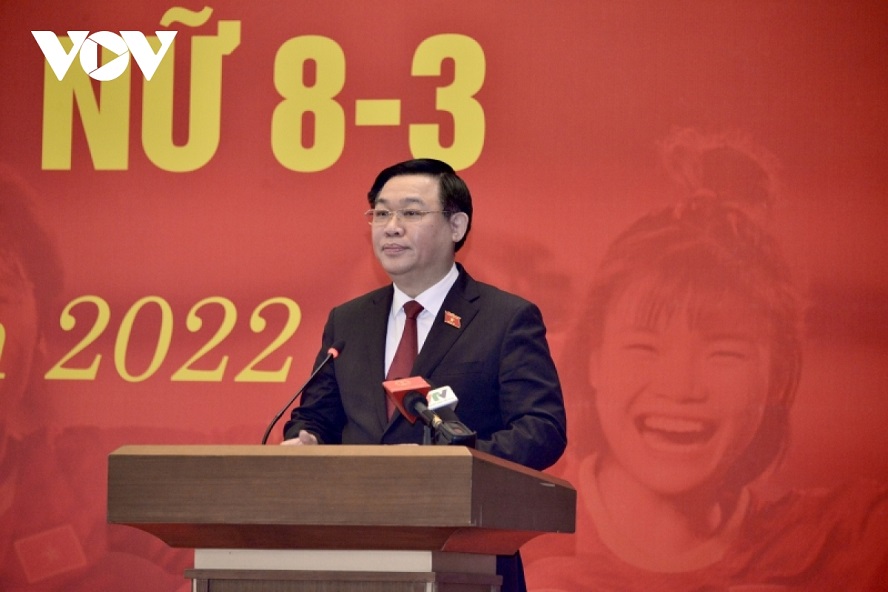 Sáng 8/3, tại Nhà Quốc hội, Chủ tịch Quốc hội Vương Đình Huệ gặp mặt Đội tuyển Bóng đá nữ Việt Nam. Phát biểu tại đây, Chủ tịch Quốc hội Vương Đình Huệ đề nghị cần nắm vững, nâng cao nhận thức về phát huy vai trò của phụ nữ trong sự nghiệp xây dựng và bảo vệ Tổ quốc, về phát triển thể dục, thể thao Việt Nam nói chung và phát triển bóng đá nữ nói riêng.