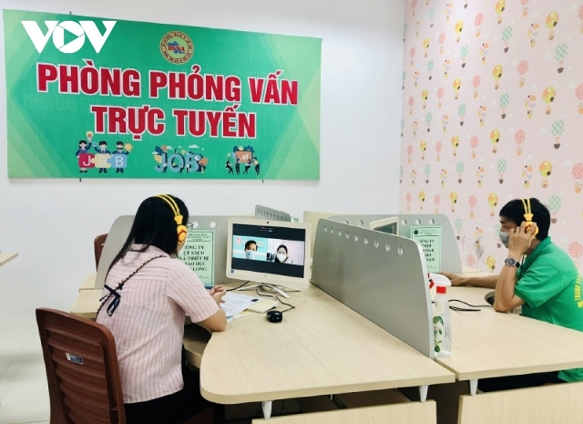 Doanh nghiệp và người lao động kết nối trực tuyến. Ảnh: VOV |