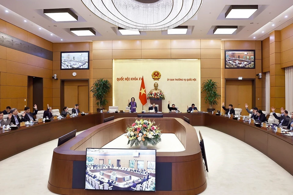 Ủy ban Thường vụ Quốc hội biểu quyết. Ảnh: Doãn Tuấn/TTXVN |