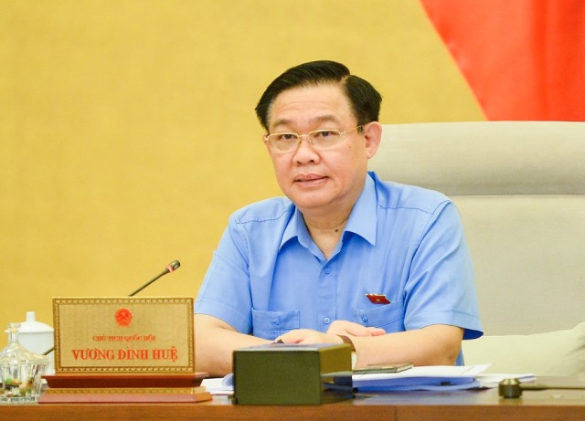 Chủ tịch Quốc hội Vương Đình Huệ phát biểu tại phiên họp. Ảnh:quochoi.vn |