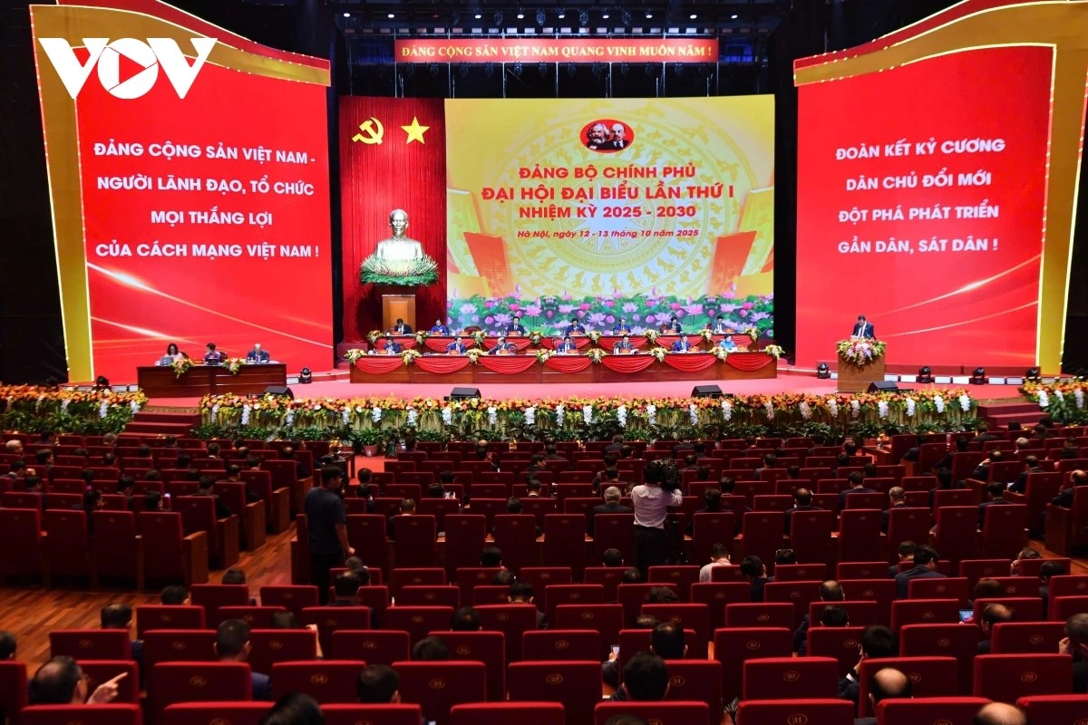 Sáng 12/10, tại Hà Nội, Đại hội Đại biểu Đảng bộ Chính phủ lần thứ nhất, nhiệm kỳ 2025-2030, đã diễn ra phiên làm việc thứ nhất. Ảnh: VOV |