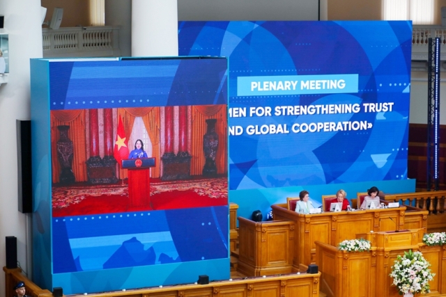Nhận lời mời của Chủ tịch Hội đồng Liên bang (Thượng viện) Quốc hội Liên bang Nga Valentina Matvienko, hôm qua (18/9), Phó Chủ tịch nước Võ Thị Ánh Xuân đã tham dự Diễn đàn Phụ nữ Á - Âu lần thứ IV bằng hình thức phát biểu ghi hình.