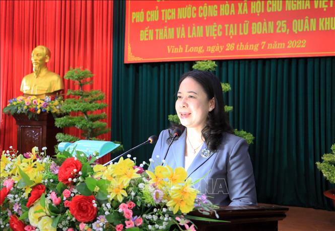 Phó Chủ tịch nước Võ Thị Ánh Xuân phát biểu tại buổi làm việc với Lữ đoàn 25, Quân khu 9 - Ảnh: TTXVN |