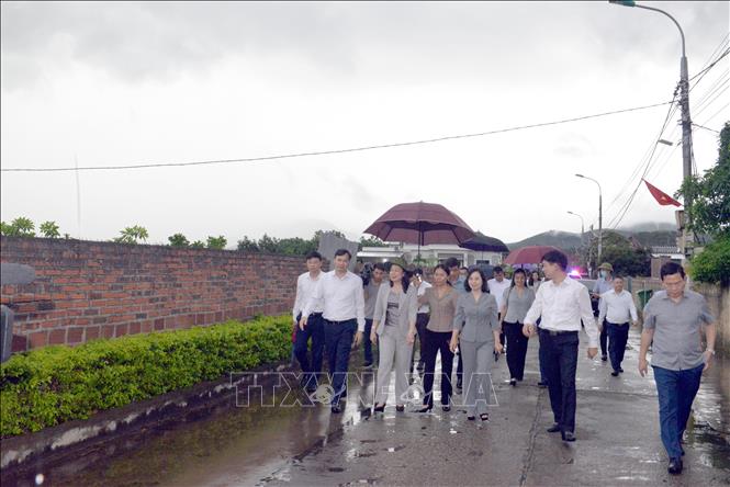 Phó Chủ tịch nước Võ Thị Ánh Xuân cùng đoàn kiểm tra thực tế xã Việt Dân, xã nông thôn mới kiểu mẫu đầu tiên của cả nước - Ảnh: TTXVN |