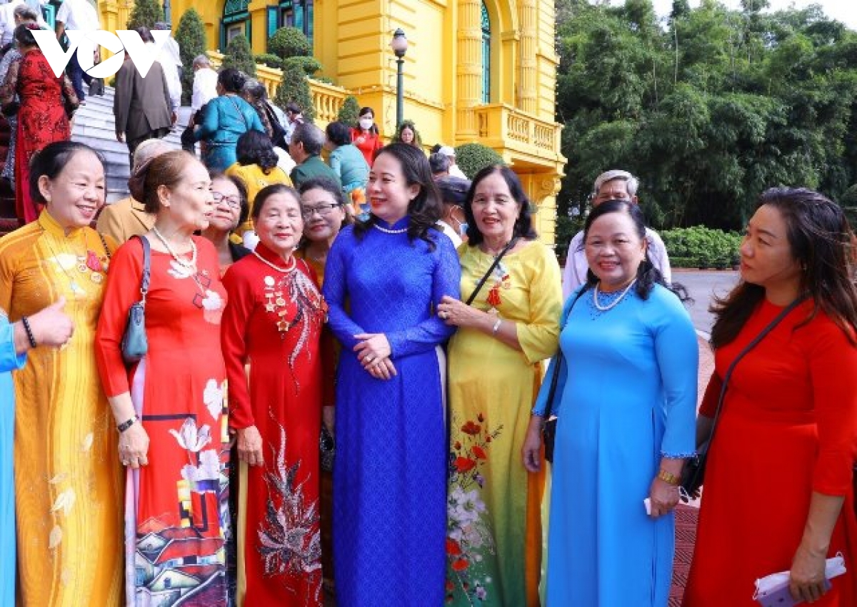 Phó Chủ tịch nước Võ Thị Ánh Xuân trò chuyện với các đại biểu. |