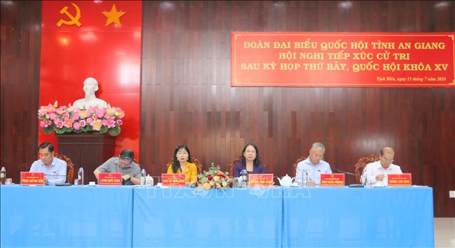 Phó Chủ tịch nước Võ Thị Ánh Xuân và Đoàn đại biểu Quốc hội tỉnh An Giang tại hội nghị tiếp xúc cử tri - Ảnh: TTXVN |