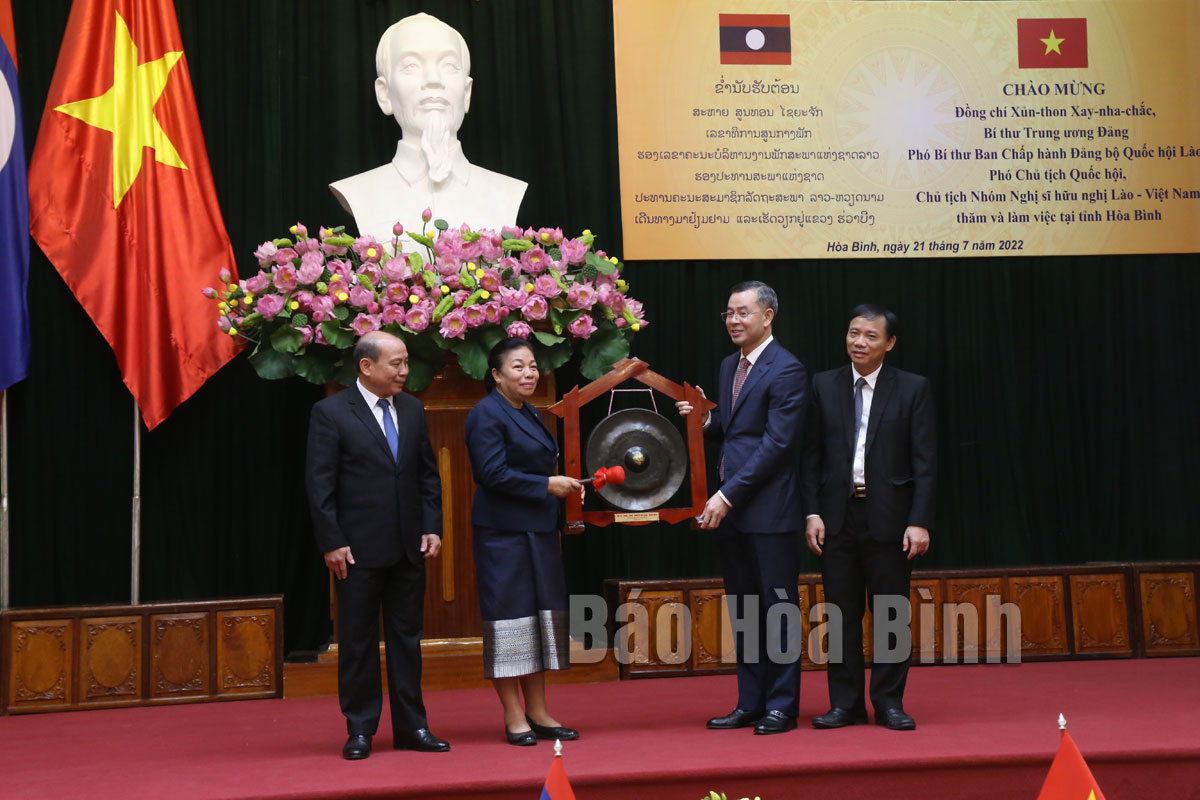 Trong khuôn khổ chuyến thăm và làm việc tại Việt Nam (từ ngày 19 - 22/7), ngày 21/7, Đoàn Đại biểu cấp cao Quốc hội Lào do Phó Chủ tịch Quốc hội, Chủ tịch Hội Nghị sĩ Hữu nghị Lào - Việt Nam, Sounthone Xayachack, làm Trưởng đoàn, thăm và làm việc tại tỉnh Hòa Bình.