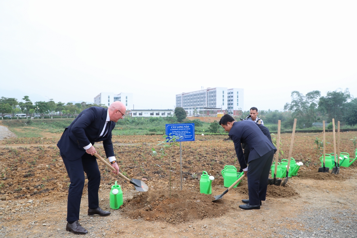 Phó Thủ tướng Liên bang Nga D.N. Chernyshenko tham gia trồng cây tại khuôn viên ĐHQG Hà Nội tại Hòa Lạc - Ảnh: VOV |