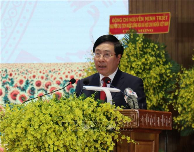 Phó Thủ tướng Thường trực Chính phủ Phạm Bình Minh phát biểu tại lễ kỷ niệm 50 năm ngày giải phóng Lộc Ninh. Ảnh: Sỹ Tuyên/TTXVN |