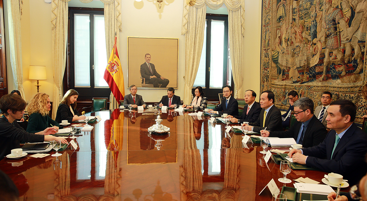 Chủ tịch Meritxell Batet khẳng định Tây Ban Nha luôn coi trọng và mong muốn đẩy mạnh quan hệ hợp tác nhiều mặt với Việt Nam cũng như quan hệ đối tác và hợp tác toàn diện giữa Liên minh Châu Âu (EU) - Việt Nam nhất là khi Tây Ban Nha là Chủ tịch luân phiên EU trong 6 tháng cuối năm nay.