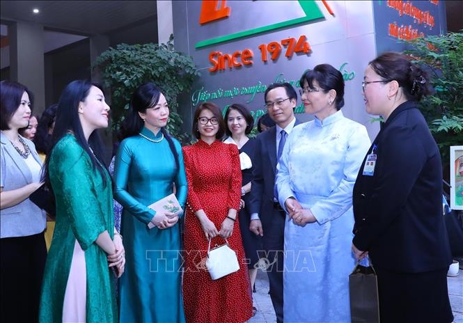 Phu nhân Chủ tịch nước Phan Thị Thanh Tâm và Phu nhân Tổng thống Mông Cổ Bolortsetseg Luvsandorj cùng với các đại biểu. Ảnh: TTXVN |