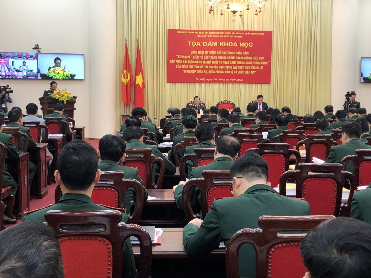 Sáng nay (20/2), tại Hà Nội, Tổng cục Chính trị Quân đội nhân dân Việt Nam phối hợp với Hội đồng Lý luận Trung ương, Nhà xuất bản Chính trị quốc gia Sự thật tổ chức tọa đàm khoa học quán triệt tư tưởng chỉ đạo trong cuốn sách “Kiên quyết, kiên trì đấu tranh phòng, chống tham nhũng, tiêu cực, góp phần xây dựng Đảng và Nhà nước ngày càng trong sạch, vững mạnh” của Tổng Bí thư Nguyễn Phú Trọng vào thực hiện thắng lợi sự nghiệp quân sự, quốc phòng, bảo vệ Tổ quốc hiện nay.