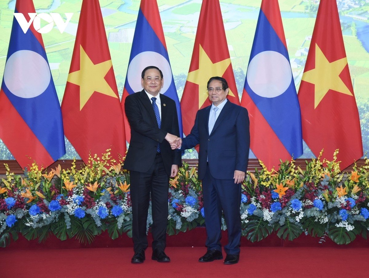 Thủ tướng Chính phủ Phạm Minh Chính và Thủ tướng Lào Sonexay Siphandone. Ảnh: VOV |