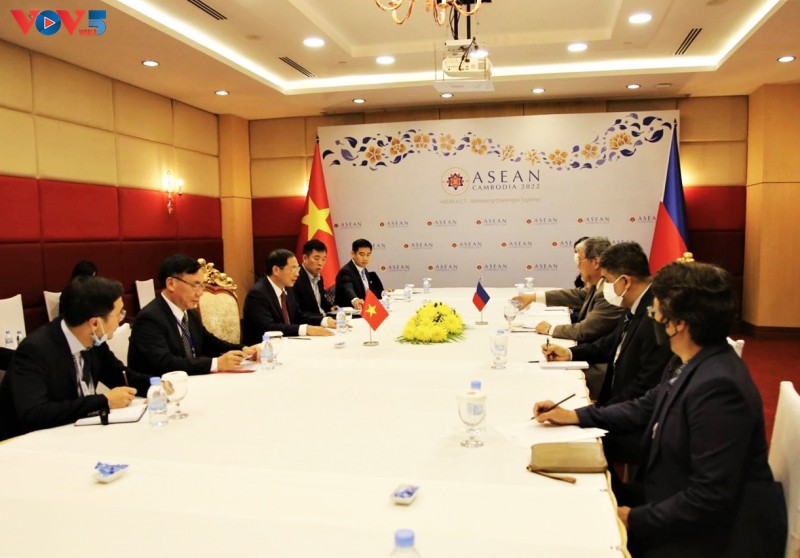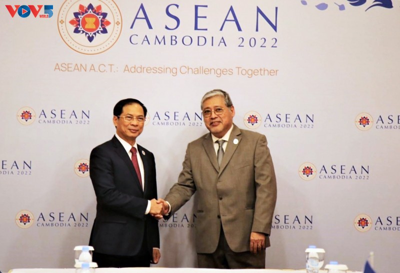 Bộ trưởng Ngoại giao Bùi Thanh Sơn và Bộ trưởng Ngoại giao Philippines Enrique Manalo. Ảnh: Văn Đỗ/ VOV-Phnom Penh |