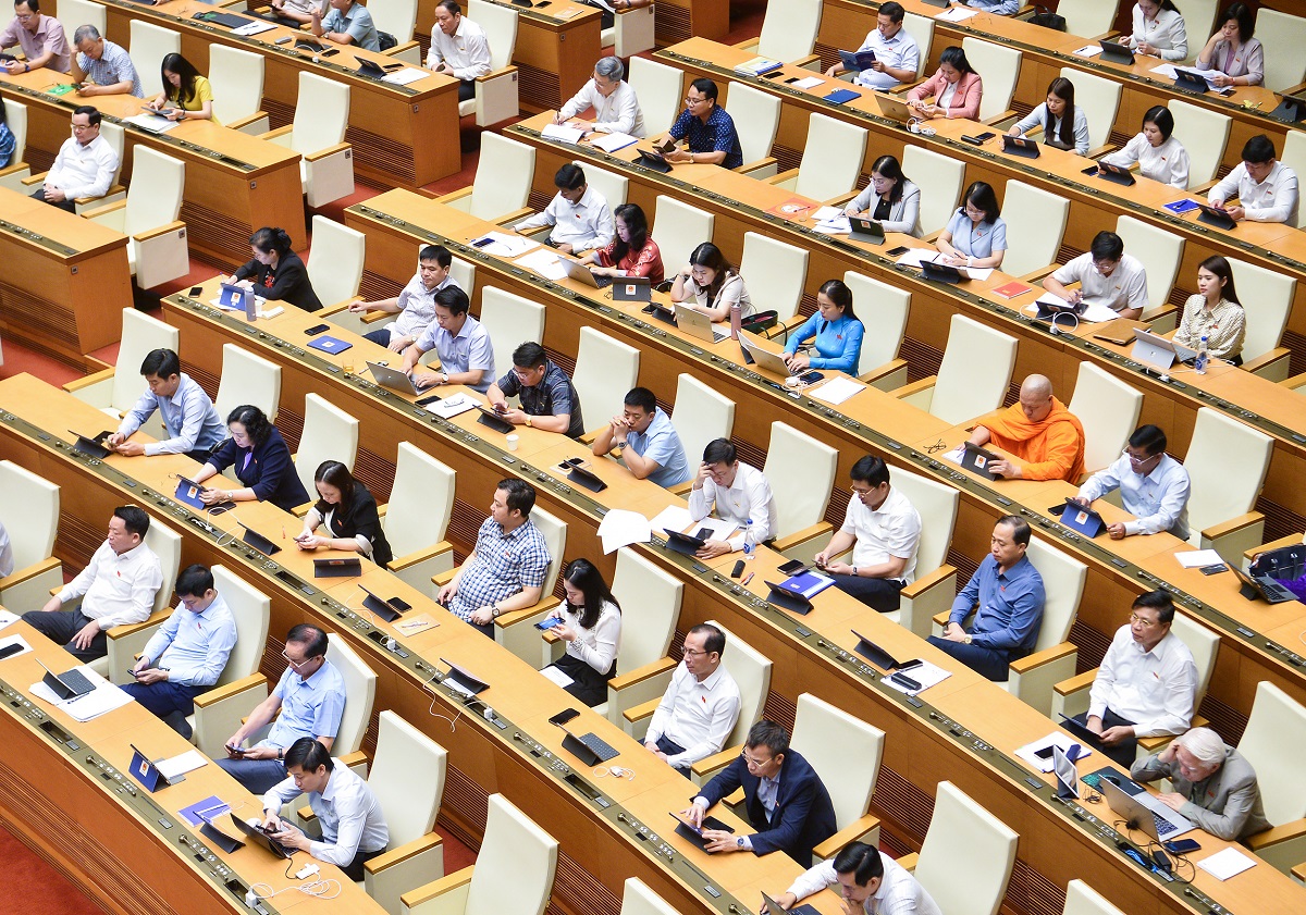 Các đại biểu Quốc hội tham dự phiên thảo luận toàn thể hội trường ngày 24/5. Ảnh: quochoi.vn |
