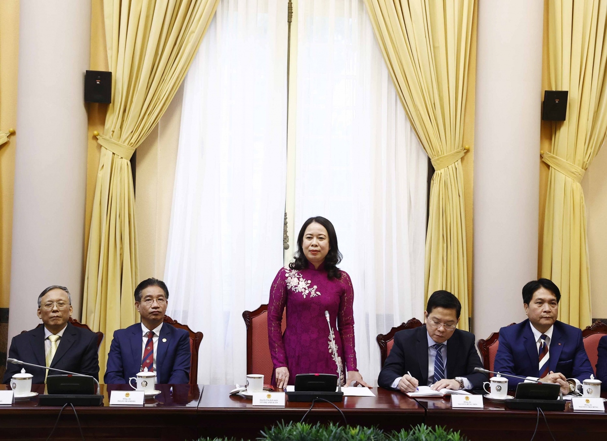 Quyền Chủ tịch nước Võ Thị Ánh Xuân mong muốn các Đại sứ nỗ lực đóng góp xây dựng nền ngoại giao hiện đại, toàn diện và bền vững - Ảnh: VOV |