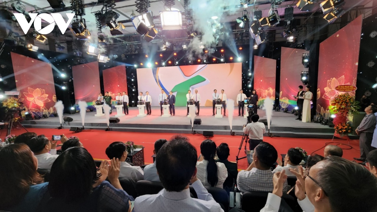 Thủ tướng Phạm Minh Chính và các đại biểu ấn nút ra mắt Kênh VTV Cần Thơ. Ảnh: VOV |