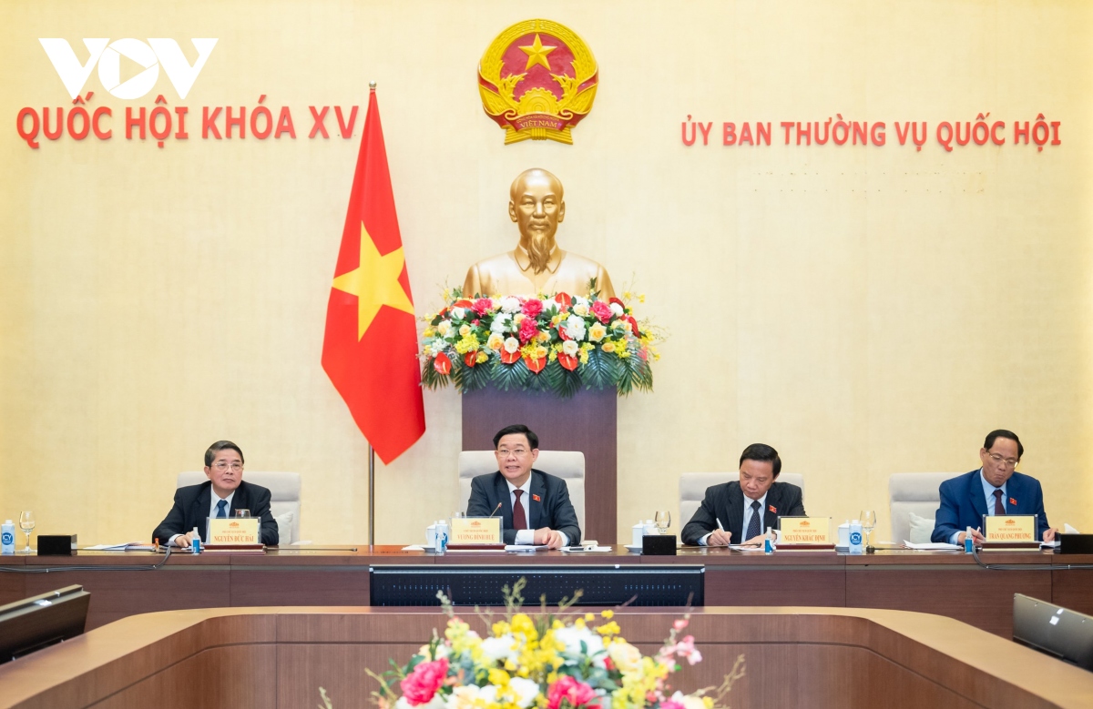 Chủ tịch Quốc hội Vương Đình Huệ phát biểu chỉ đạo cuộc làm việc. Ảnh: VOV |