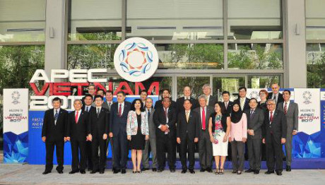 | Trưởng SOM các nền kinh tế APEC chụp ảnh chung. Ảnh: Nguyễn Khang – TTXVN |