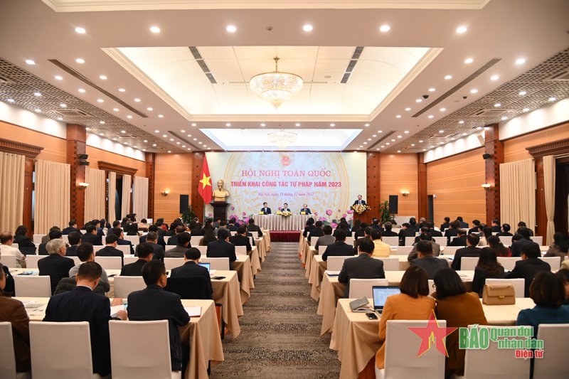 Chiều 19/12, tại Hà Nội, phát biểu tại Hội nghị toàn quốc triển khai công tác tư pháp năm 2023 của Bộ Tư pháp, Phó Thủ tướng Thường trực Chính phủ Phạm Bình Minh đề nghị Bộ, ngành Tư pháp tiếp tục nghiên cứu, hoàn thiện thể chế, pháp luật về tổ chức thi hành và theo dõi thi hành pháp luật; xác định rõ cơ chế phân công, phối hợp, kiểm soát, giám sát giữa các cơ quan trong thi hành pháp luật.