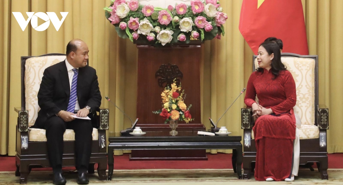 Phó Chủ tịch nước Võ Thị Ánh Xuân và Chủ tịch Hội Liên hiệp Thanh niên Campuchia. Ảnh: VOV |