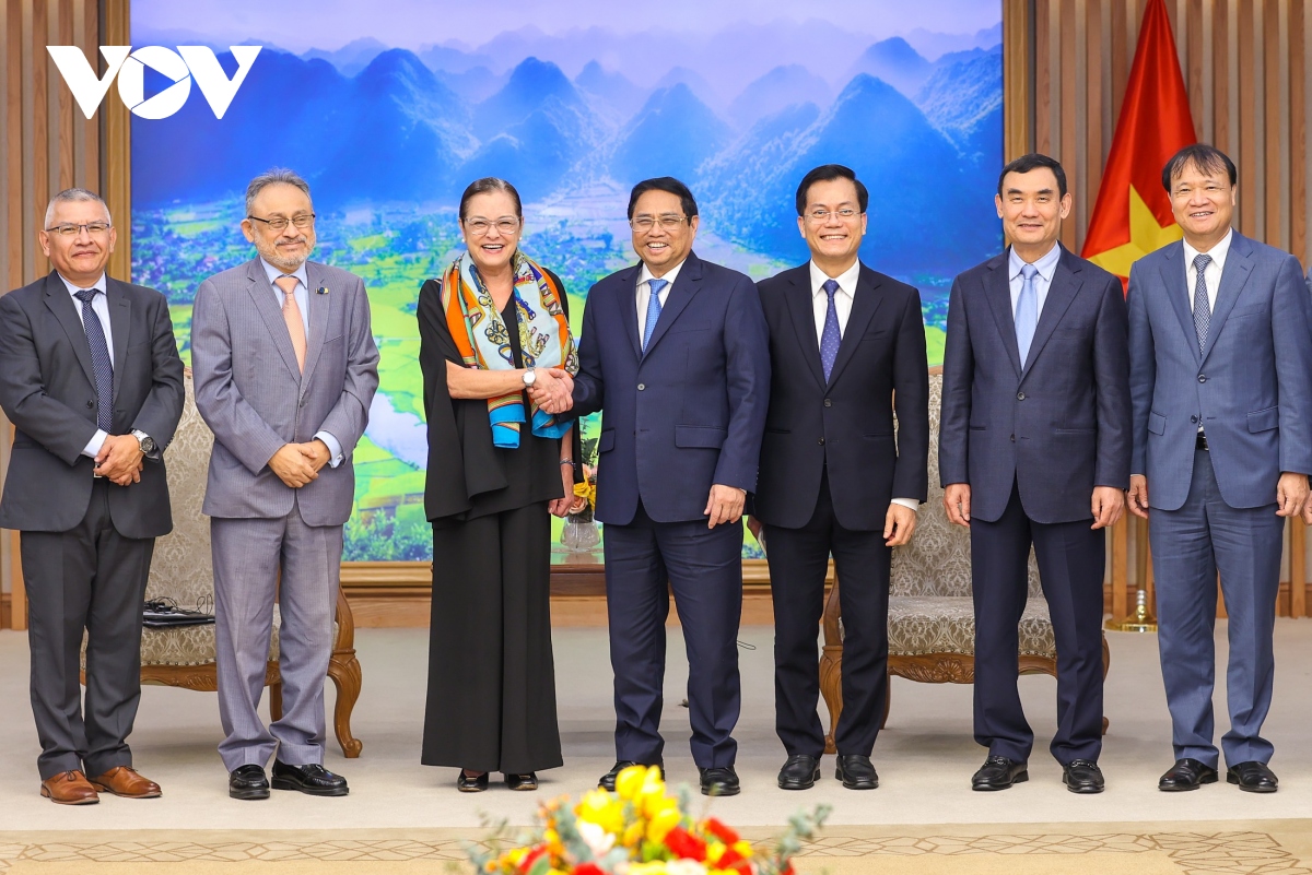 Thủ tướng Phạm Minh Chính đề nghị El Salvador tạo thuận lợi tiếp cận thị trường cho hàng hóa thế mạnh của Việt Nam, đặc biệt là nông, thủy sản; hai bên phối hợp xây dựng khuôn khổ pháp lý thuận lợi cho thương mại và đầu tư, tăng cường các hoạt động trao đổi đoàn doanh nghiệp, đưa Việt Nam và El Salvador thành điểm kết nối giữa thị trường Trung Mỹ và Đông Nam Á.