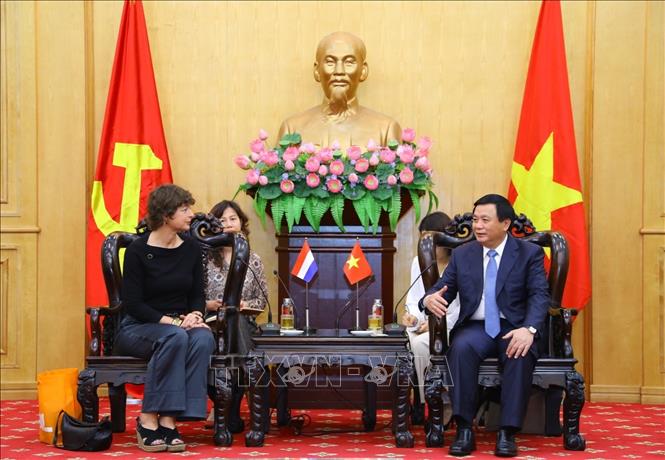 Giám đốc Học viện Chính trị quốc gia Hồ Chí Minh Nguyễn Xuân Thắng tiếp Đại sứ Hà Lan tại Việt Nam Elsbeth Akkerman - Ảnh: Văn Điệp/TTXVN |