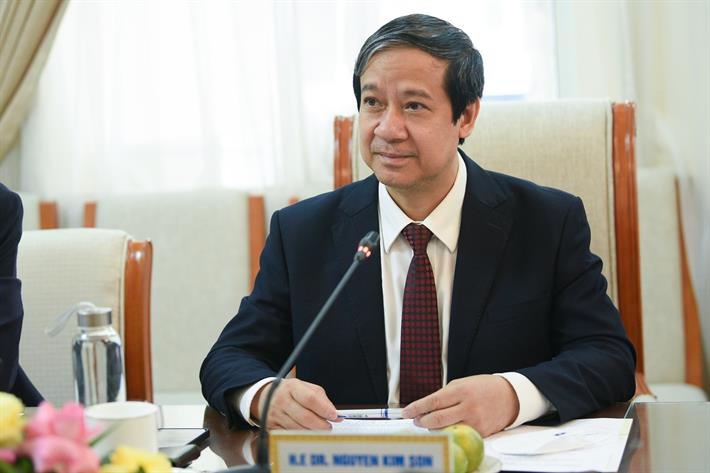 Bộ trưởng Nguyễn Kim Sơn tại buổi tiếp. Ảnh: Bộ Giáo dục và Đào tạo |