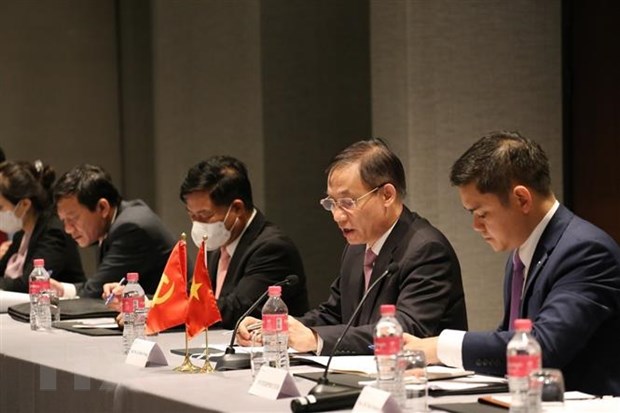 Trưởng Ban Đối ngoại Trung ương Lê Hoài Trung phát biểu tại hội đàm với Ban Đối ngoại Trung ương Đảng Nhân dân Campuchia. Ảnh: TTXVN phát |