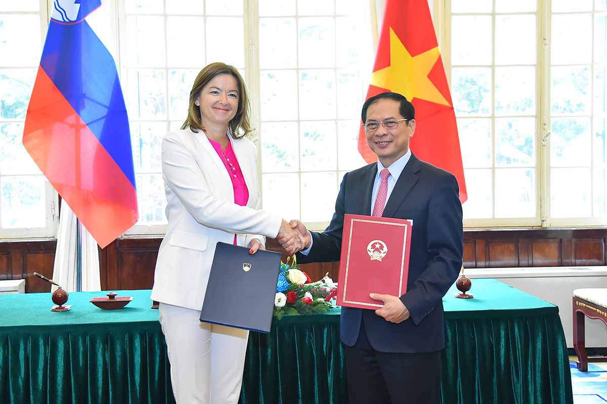 Sau hội đàm, Bộ trưởng Ngoại giao Bùi Thanh Sơn và Phó Thủ tướng, Bộ trưởng Ngoại giao và Các vấn đề Châu Âu Slovenia Tanja Fajon đã ký Thỏa thuận hợp tác giữa Bộ Ngoại giao Việt Nam và Bộ Ngoại giao và Các vấn đề Châu Âu Slovenia.