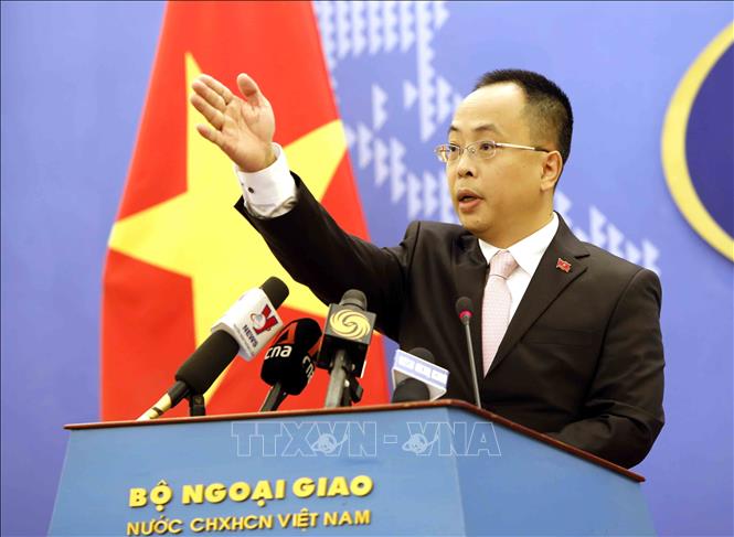Phó Phát ngôn Bộ Ngoại giao Đoàn Khắc Việt mời các phóng viên đặt câu hỏi. Ảnh: An Đăng/TTXVN |